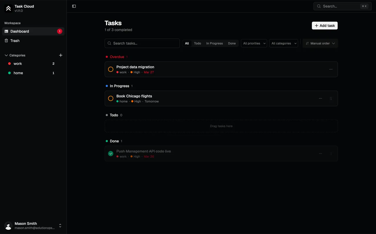 Most task apps try to do everything. This one does less, better. Clean categories, keyboard-first navigation, and nothing between you and your work. Every feature gets its own test environment with automated checks before anything touches production.